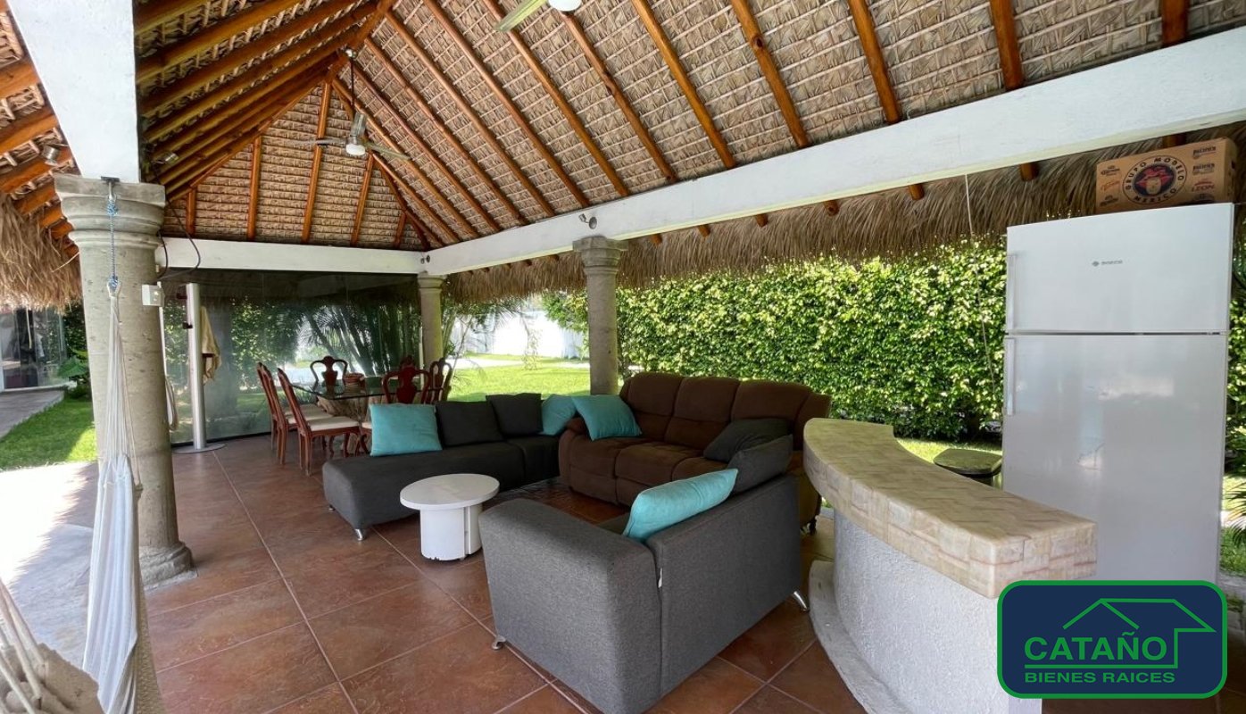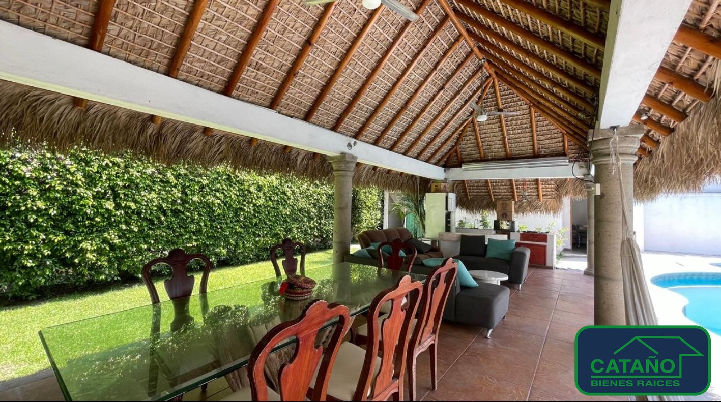 Residencia con amplios espacios, funcional y con gran comodidad, ideal para familias que gustan de vivir en un entorno privado y rodeados de naturaleza. Cuenta con sala comedor con gran iluminación natural, cocina integral grande equipada con isla central ,tiene una bodega/almacén en la parte posterior, área de lavado, 5 habitaciones, todas con baño completo, 2 tienen vestidor y las otras 3 con closet,2 de ellas con tina, amplio jardín de 386 m2 aprox., palapa con fregadero, estufa y barra, perfecta para eventos o reuniones, alberca y jacuzzi, cancha de tenis con cimentación preparada para cancha de pádel, baños en el área de alberca para hombres y mujeres con lavamanos, servicio y regaderas, roof garden con vistas panoramicas, fuente decorativa que realza el ambiente, sistema de circuito cerrado de vigilancia cuenta con detección de movimiento y alarma, riego automático, paneles solares y filtros de potabilización de agua en toda la casa, sistema hidroneumático con cisterna de 8,000 lt., estacionamiento para 6 autos. Cuenta con un departamento con entrada independiente con sala comedor, baño completo, una habitación con balcón privado.
