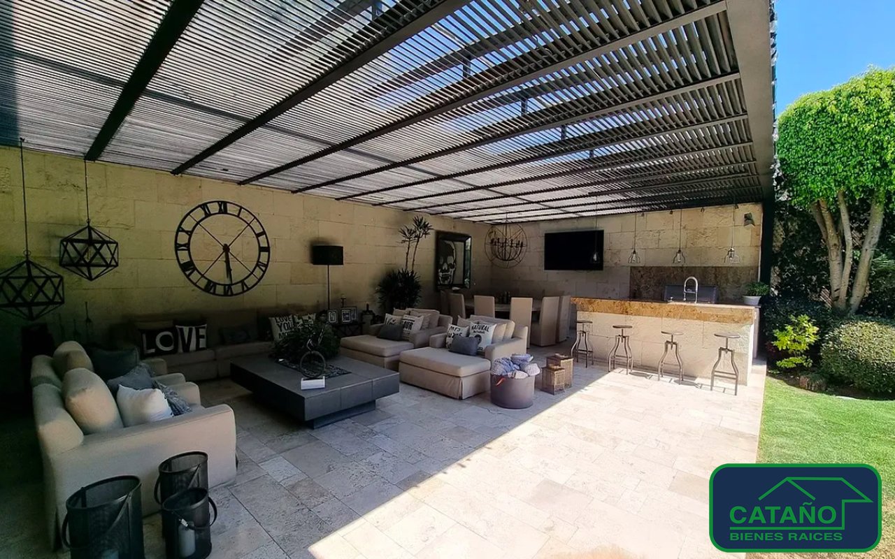 Casa en venta estilo Mediterráneo contemporáneo en exclusivo condominio de solo 7 residencias, con máxima privacidad y vigilancia 24 horas. La propiedad destaca por su espectacular entrada a doble altura con elegante hall recibidor y despacho con terraza. Toda la casa es muy luminosa y desde la entrada se aprecia el hermoso jardín, con acceso directo desde las áreas sociales: sala, comedor, family room y desayunador, todos con ventanales de piso a techo que integran interior y exterior. Cuenta con jardín de aproximadamente 230 m² y una terraza de 100 m² equipada con asador, sala y comedor exterior, ideal para convivencias. Cocina amplia con alacena, lavandería y patio de tendido. En planta alta se encuentran 4 recámaras tipo suite, cada una con vestidor, baño completo y terraza, además de family room y clóset de blancos. El sótano ofrece estacionamiento para hasta 10 autos, cuarto de servicio, cuarto de chofer, bodegas y dos accesos independientes a la casa. También se ubica un salón de juegos con cantina, cava y medio baño, con acceso directo a la residencia.