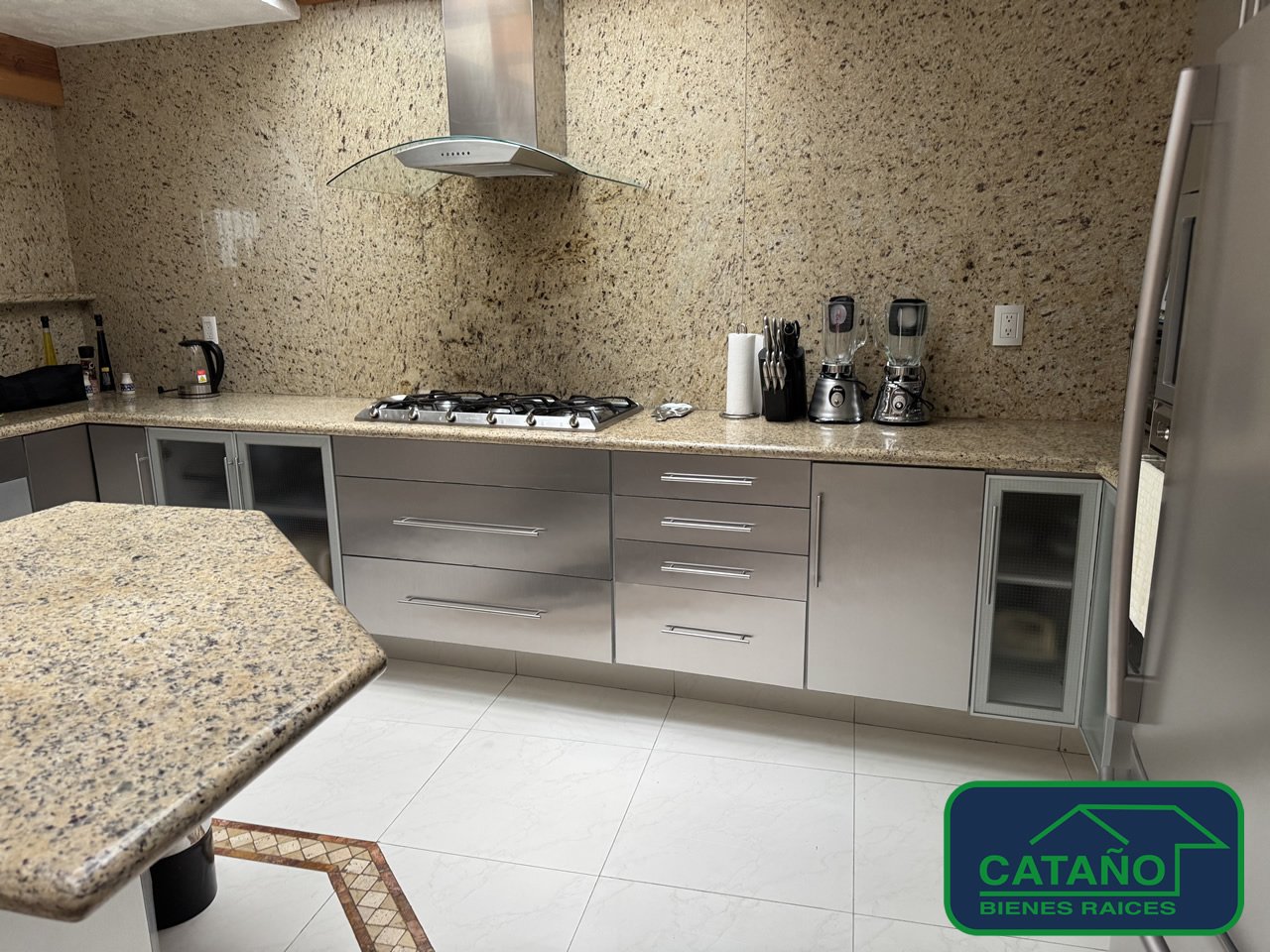 Preciosa casa en un condominio de 10 casas, todas son diferentes, ya que se vendieron los terrenos y cada quien construyó a su estilo. La casa esta como nueva, consta de recibidor, sala con chimenea, comedor, family room a triple altura, toda esa área tiene vista al jardín y salida a el jardín, mide aprox 60 m con una preciosa fuente, la cocina es integral se quedan todos los equipos, refrigerador, lavavajilla, 2 alacenas, tenemos un desayunador, estudio con libreros, el escritorio es de granito, baño de visitas, subimos y tenemos recamara principal grande con vista al jardín, dos vestidores, el baño tierne sauna y vapor, las otras dos recamaras tiene tapanco y su vestidor, y baño. Sala de tv. Tenemos 2 áreas de cuarto de lavado, cuarto de servicio, con baño, 2 bodegas, 4 estacionamientos cubiertos, baño para chofer, la casa tiene calefacción, sonido ambiental, paneles solares, hidroneumático, celdas solares, cargador para autos, universal mármoles, granito, y pisos de madera. El condominio cuenta con lugares de estacionamiento para visitas, vigilancia 24 hrs, el mantenimiento es de $5,500.00. No mascotas.
