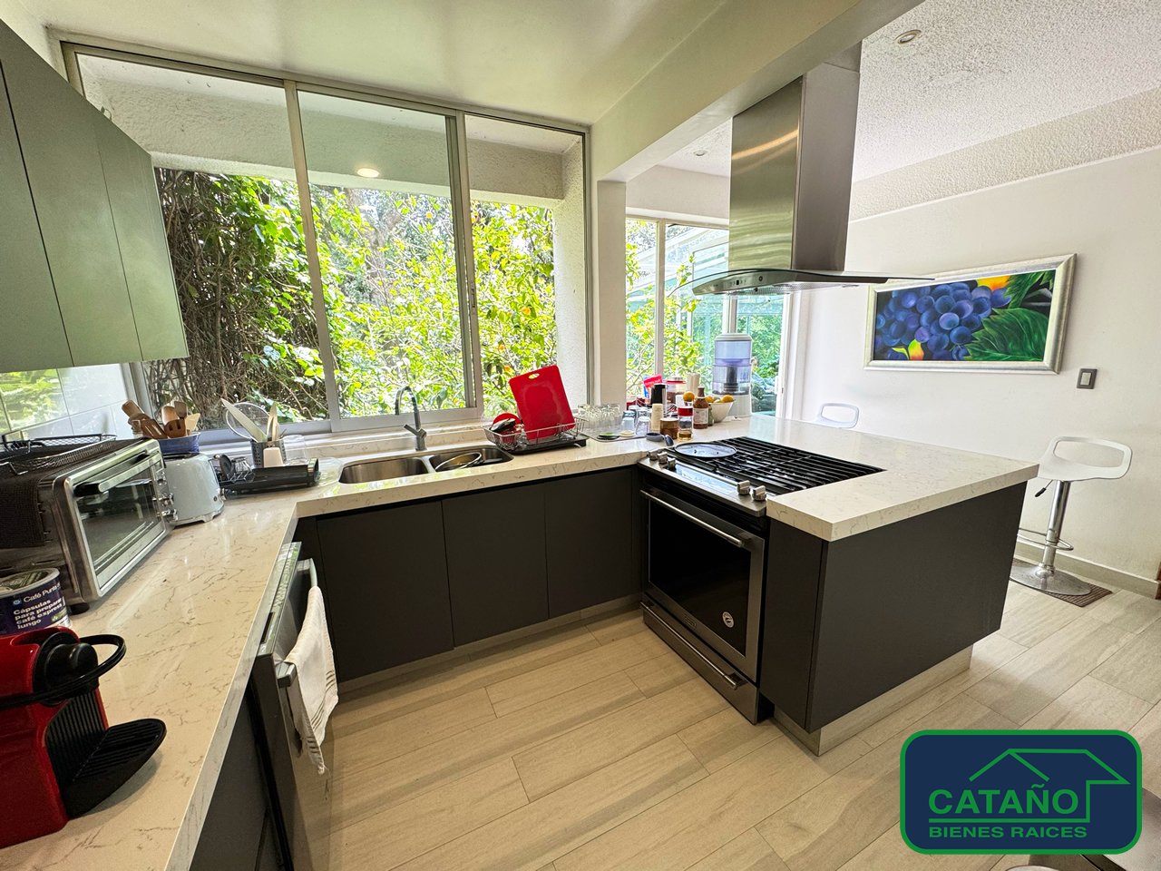 Casa en calle cerrada con vigilancia. Agradable casa con buenos acabados y en perfecto estado, remodelada hace 5 años, tiene sala y comedor amplios, cocina con espacio de antecomedor, bar y una sala de televisión agradable con vistas hacia árboles, 3 recamaras con baño, la principal con vestidor, medio baño para visitas, cuarto de servicio con área de lavado cuenta con jardín frontal y trasero con vistas a zona arbolada, estacionamiento techado para 4 autos. En la parte alta hay un espacio que puede ser un estudio o taller de pintura con balcón agradable y chimenea. A la altura del estacionamiento hay un gran salón que es salón de usos múltiples.